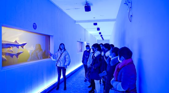 参与领取的学生家长早早便来到活动现场,在鲟龙生态园导游的带领下,先后参观了公司的世界鲟鱼馆、室内外养殖区及车间生产加工工艺流程,并邀请家长们在品鉴区亲自为孩子品尝不同种类的鲟鱼鱼子酱产品,现场十分热闹。