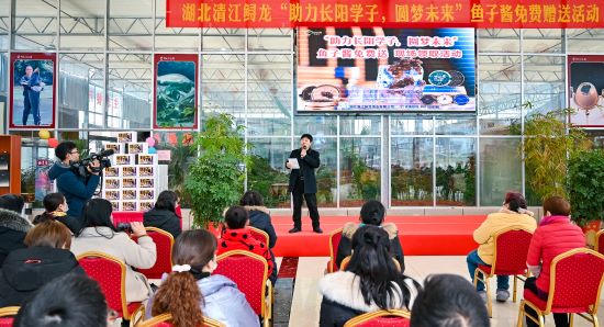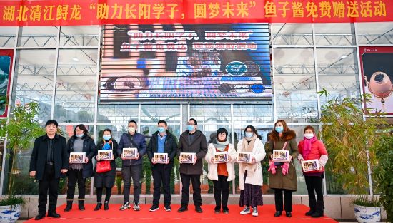 2020年12月20日上午,湖北清江鲟龙“助力长阳学子,圆梦未来”鱼子酱免费赠送活动在鲟龙生态园游客大厅内举行,现场成功为长阳县61位高中学子送去鱼子酱精美礼盒和祝福。