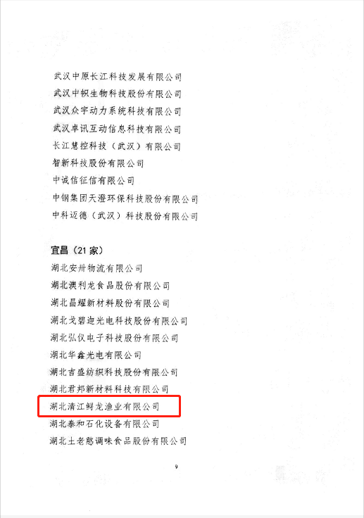 近日,湖北省企业上市工作领导小组办公室发布了2021-2022年度上市后备“银种子”企业名单,经省、市、区各级金融办(上市办)层层筛选、推荐,结合专家评审意见,总共遴选出348家治理结构完善、发展潜力巨大的企业。湖北清江鲟龙渔业有限公司凭借自身优势成功入选。